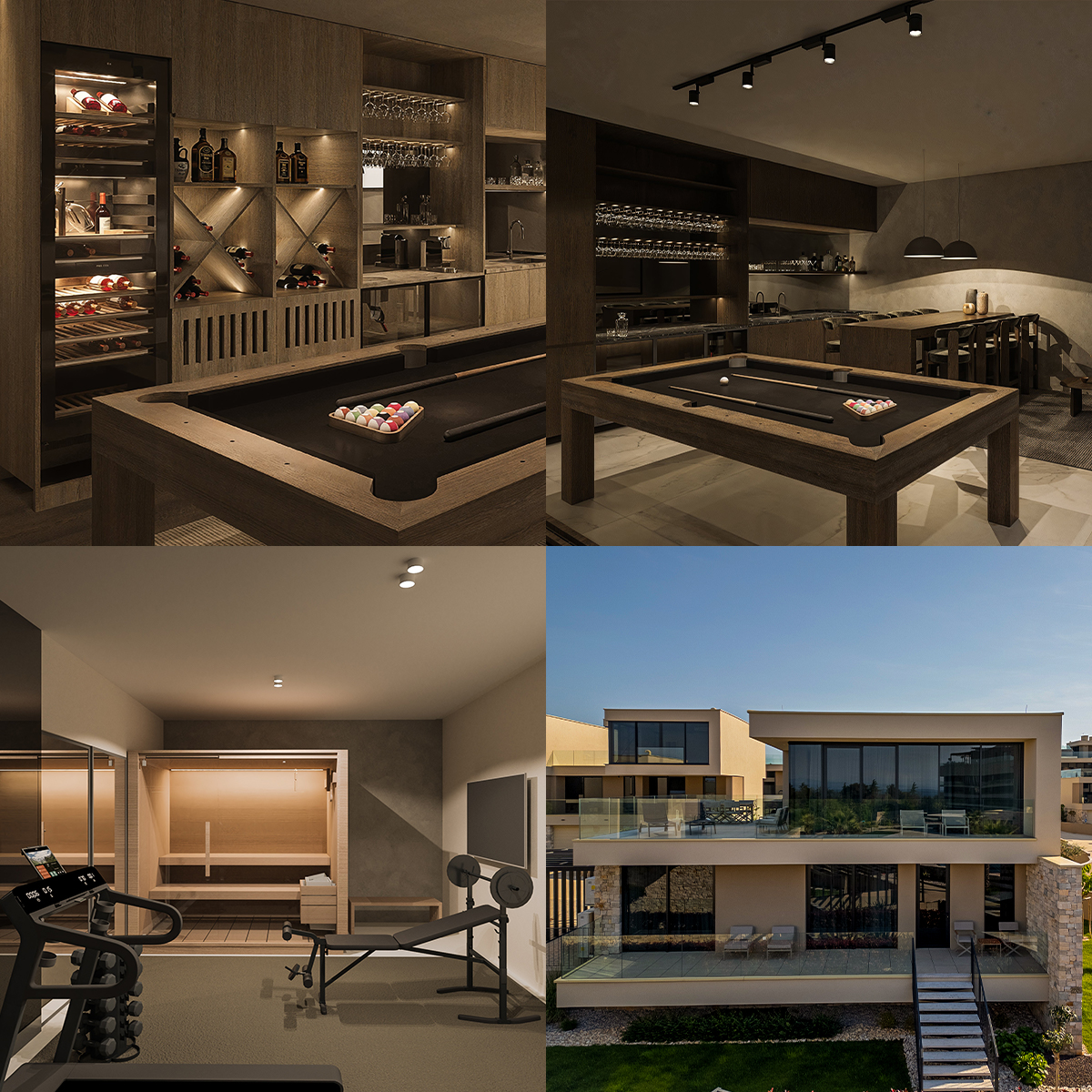 Neu renovierte Villen bieten vollkommenen Luxus und Privatsphäre, mit exklusiven Annehmlichkeiten wie privatem Fitnessraum, Sauna und Spielzimmer – sorgfältig gestaltet für Ihre Entspannung und Unterhaltung.