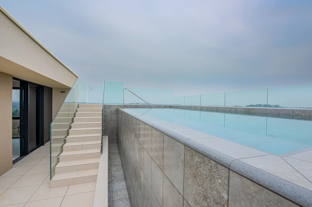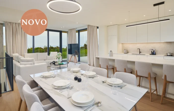 Vaš privatni komadić raja, naša vila s vlastitim bazenom za osam osoba. Vile ovoga tipa nalaze se na južnom, povišenom dijelu terena zbog čega imaju fantastičan pogled na istarski pejzaž, more te izlazak i zalazak sunca u kojima možete uživati i iz vlastitog krovnog infinity bazena.